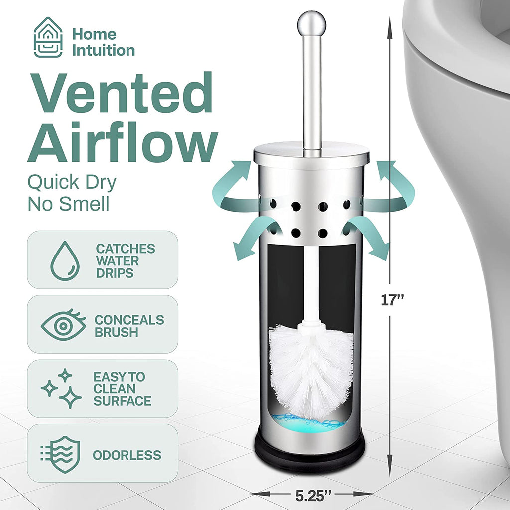 Home Intuition steel toilet brush decoratively stores brush in a modern fashion to prevent leaking and keep floors clean and dry, as well as an simple way to clean and store . Measures At 4-in x 4-in x 14.5-in.